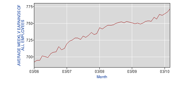 Looking at the different Bureau of Labor Statistics’ data, earnings were flat for most of 2009. That might explain a dip in job satisfaction in 2009 but not in 1987 – 2008 (Chart 1 above). A closer look at hourly compensation, manufacturing output and business output do not show a correlation between economic indicators and job satisfaction.